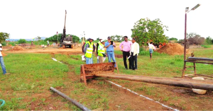 Geology of the East block is constructed based on these few outcrops and drill hole data. The average surface elevation of the East Block is 428m and is spread over an ancient artisanal working, which trends N-S and extends over 500m along strike with an average width of 40m. Observations made on the limited outcrops indicate that the East Block is composed predominantly of medium-grained Granodiorite, which at places exhibit intense brittle to brittle-ductile shearing. Trend of the shear zones vary from N-S to NNE-SSW with moderate to steep westerly dips. Where ever found this stretching lineation’s plunge towards NW.